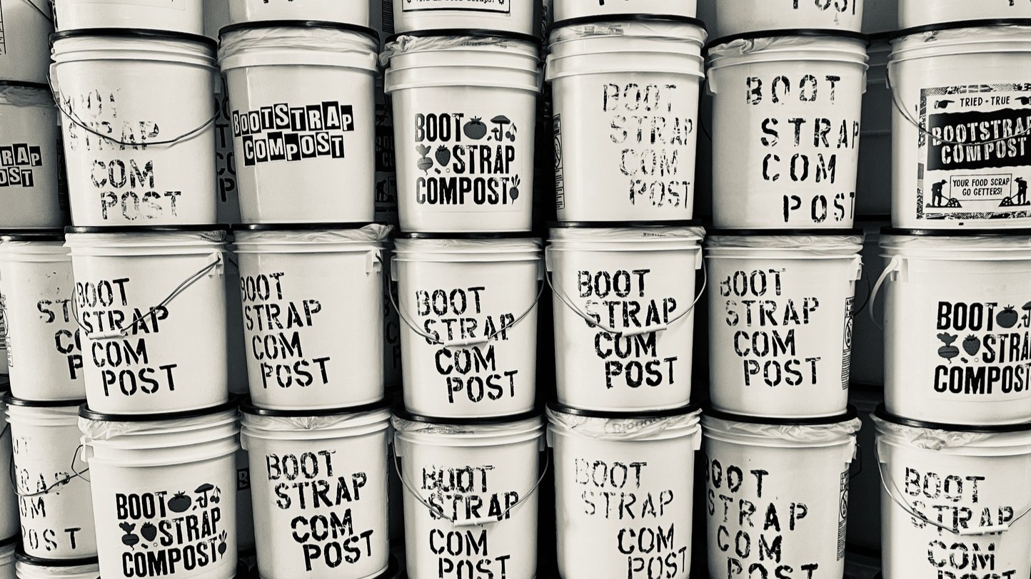 Customers begin their composting journey when Bootstrap delivers a five-gallon food scrap bucket, which is used to collect organic waste such as fruit and vegetable scraps, coffee grounds, eggshells, and other biodegradable materials. Each week or every two weeks, the filled bucket is collected and replaced with a clean one, ensuring a hygienic and convenient process.